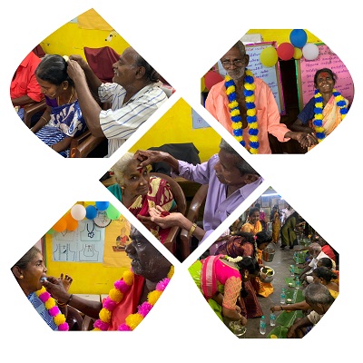 Arunodhaya Field Office in Korukkupet was filled with festive cheer on 5th October 2024 as it welcomed fifteen senior citizen couples from underserved areas for a special day of celebration. The event, which was part of the Daan Utsav (Joy of Giving) week, offered the couples a chance to relive happy memories, renew their marriage vows, enjoy cultural programs, receive gifts, and indulge in a delicious meal. Volunteers from Omega Health Care Services also conducted a session, sharing simple physical exercises to help the couples stay fit. The couples expressed that the event brought back fond memories of their wedding day, leaving them feeling refreshed, happy, and joyful. The programme was organised by Arunodhaya team in Korukkupet.