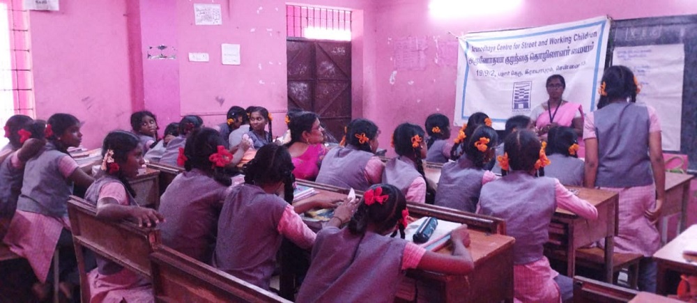 Arunodhaya team conducted child rights training for members of Police boys and girls club at Kuyilthottam, Santhome.
