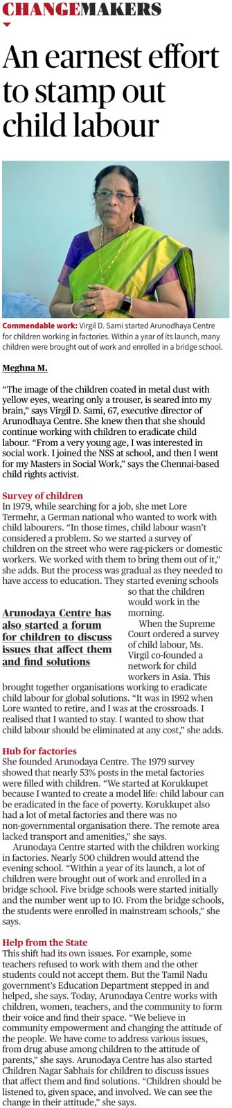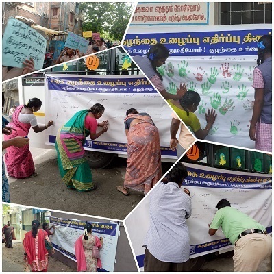 Arunodhaya observed International day against child labour in the intervention areas. Rallies and signatures campaign with a pledge to eliminate child labour and promote children's rights was organised with the participation of different stakeholders in the communities.