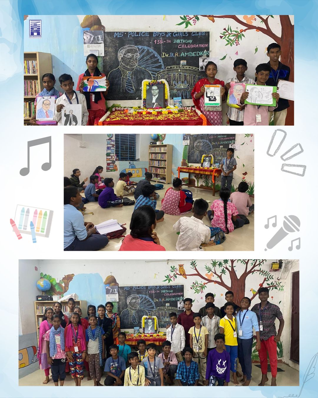 On 14.4.2025 at around 6 PM, students celebrated the 135th birth anniversary of Annal Dr. B. R. Ambedkar 🎉 at the Airsite Boys and Girls Club 🏫. A total of 26 students 👩🎓👨🎓 participated in the event. They performed poems ✍, songs 🎶, speeches 🎤, and drawings 🎨 related to Ambedkar. Sweets were distributed 🍬 to all the students.