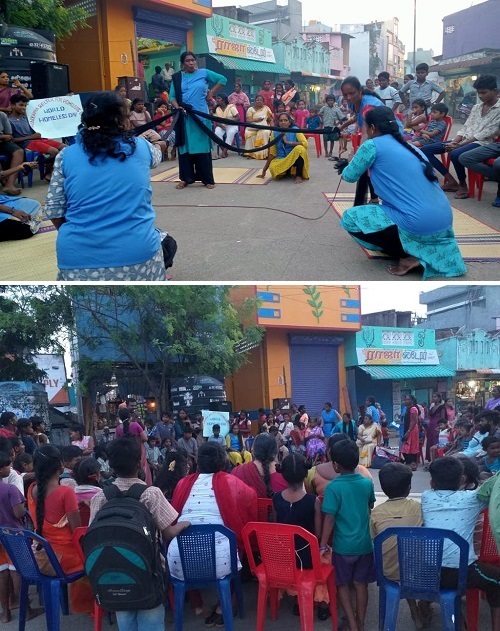 Street play crating awareness on homelessness conducted by Arunodhaya cultural team on 14th October at R.R.nagar, Kodungaiyur