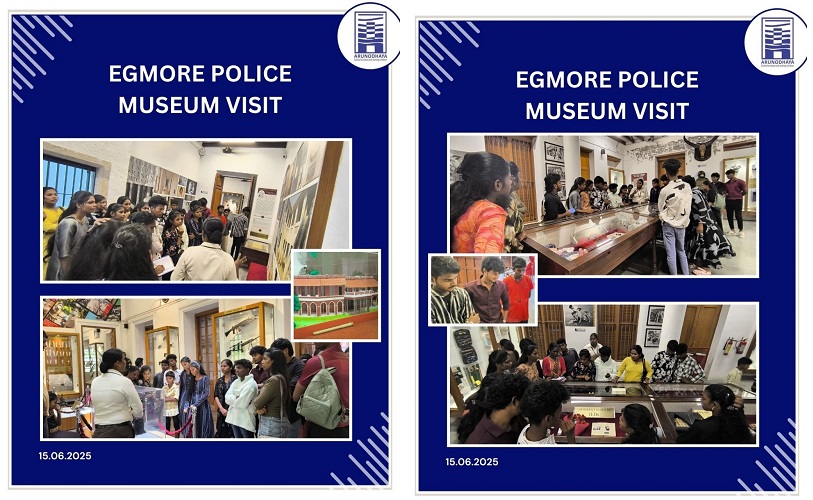 📅 On 15.06.2025, Arunodhaya Organized Exposure Visit the Egmore Police Museum 🏛. It was a day filled with learning 📚, curiosity 🔍, and inspiration ✨ as the children explored and gained knowledge about law ⚖, history 📜, and public service 👮♂💼