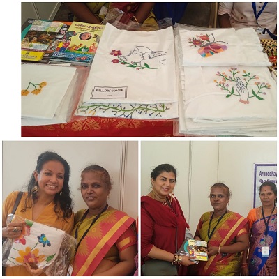 Women from Arunodhaya had the opportunity to exhibit their embroidery items and artificial jewellery at the 'Textures of traditions-culture festival'on 17th September 2023 held at Kraft Retail dining, Nandanam,Chennai. Embroidered handkerchiefs, pillow covers, table clothes and artificial jewellery were displayed.