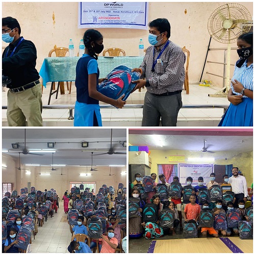 Distribution of school bags and education materials to 350 children supported by DP world Chennai on 22nd and 23rd July 2022