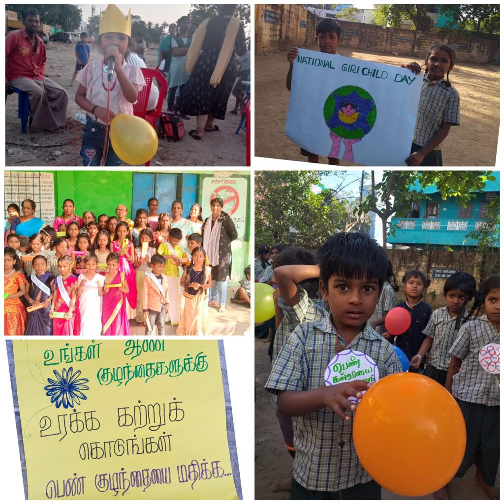 National girl child day celebration was held in the communities and schools with rangoli, awareness session, cultural programs