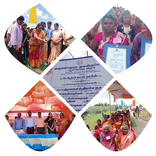 Another progressive step in Arunodhaya nagar. On 27th July 2023 Boomi Pooja was done for construction of 48 houses for Irula families. Tiruvallur district Collector issued the work order. Arunodhaya gifted the land to the government for construction of the houses.