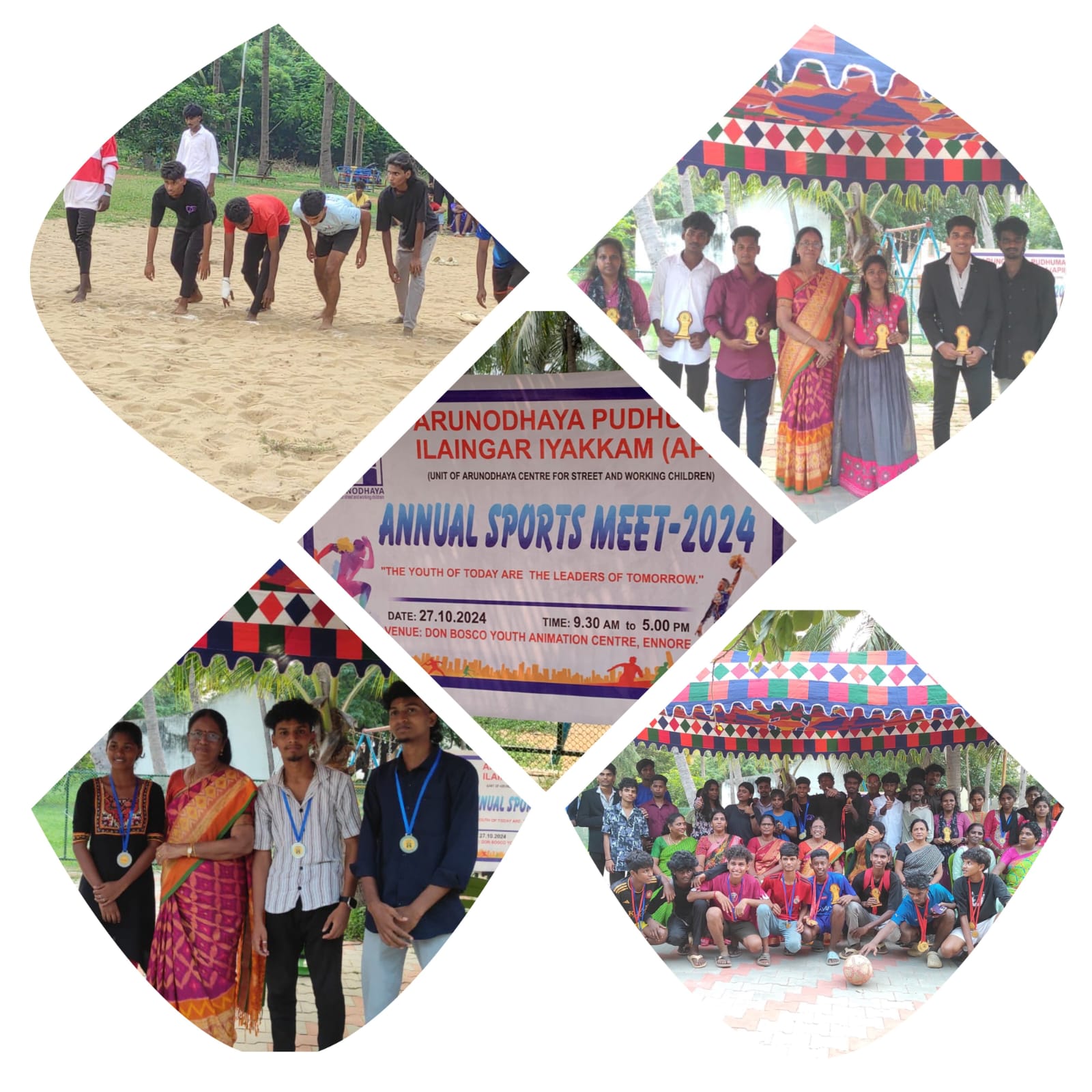 Sports meet was held for Arunodhaya Pudhumai Ilaingar Iyakkam members on 27th October 2024. The event was organised by the Youth Parliament as a strategy to strengthen the youth forum. Cricket, Volley ball, Frisbee, running, Javeline throw and Relay race were held.