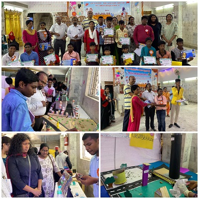 Young Scientists for Social Change - Scientific inventions exhibition was organised on 3rd June 2023 by Arunodhaya. Thirteen projects were presented by children. Making products from e waste, shoes for physically challenged, ideas to prevent pollution from factories, prevent children from falling into open drains etc were presented.
