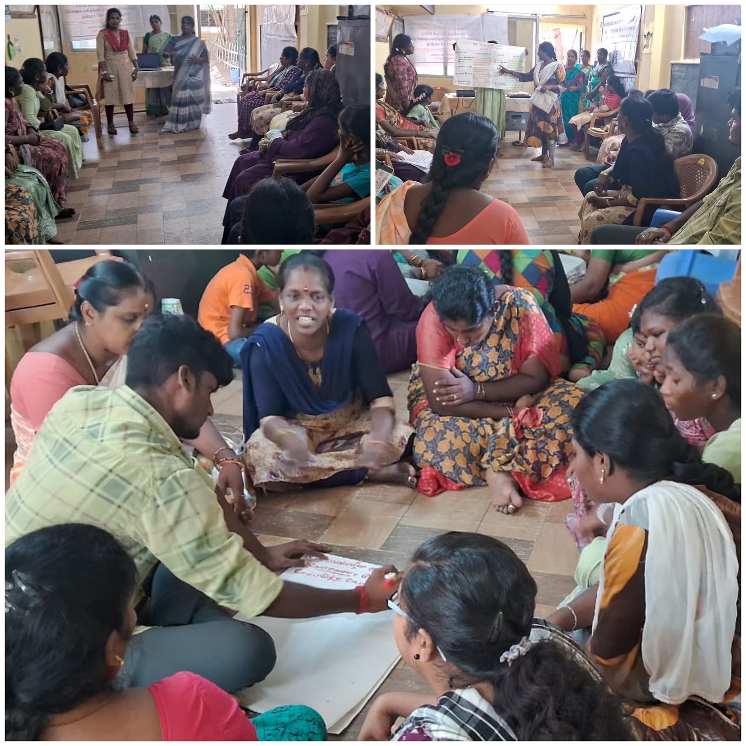 Arunodhaya organised a training for community members to be Champions of women safety. This training is being done in collaboration with with Gender and Policy lab, Greater Chennai Corporation and Red dot. It is planned to train 90 community members in AIR site, Ernavur.
