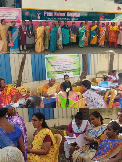Arunodhaya is implementing Sexual and Reproductive Health Awareness Programme in partnership with Omega Health Care Services. As part of this intervention a special health camp for women facilitated by Pen Nalam Hospital was organised on February 4, 2024 in Korukkupet. Screening for cervical and breast cancer was the primary emphasis of the camp. Fifty four women were screened by the team. In order to reach more women we intend to host health camps in other locations.