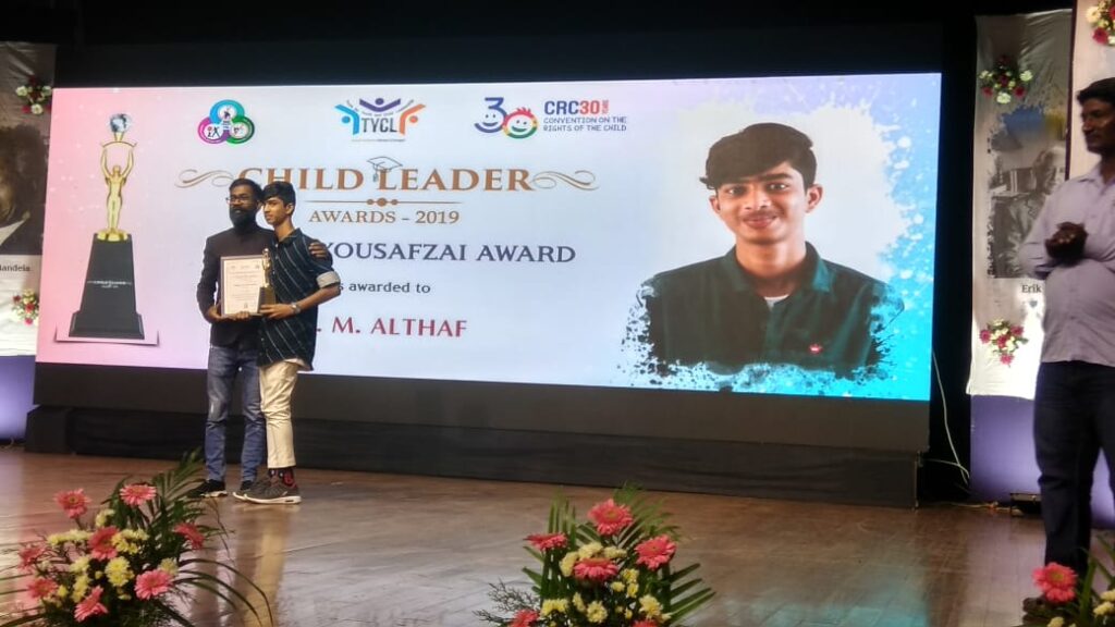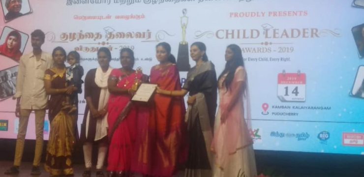 Arunodhaya women sangam leader Ms Loganayagi received the family award at the child leader award function