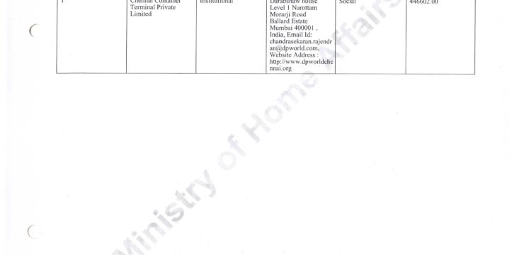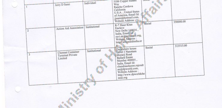 Details of Quarterly Receipt of Foreign Contribution Jan – Mar 2017