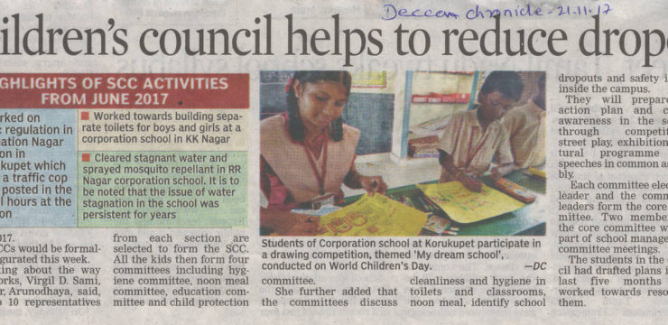 Children nagara Sabai meeting was held in 10 wards in zone 1,4 and 5. Ward councillors, Police officials, area leaders and teachers participated. Children presented their concerns and demands.