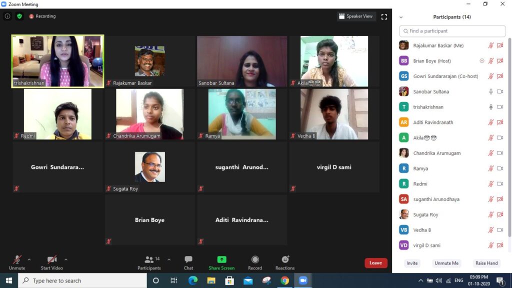 Arunodhaya Children Sangam interacted with Ms. Trisha Krishnan, UNICEF celebrity ambassador on 1st October 2020