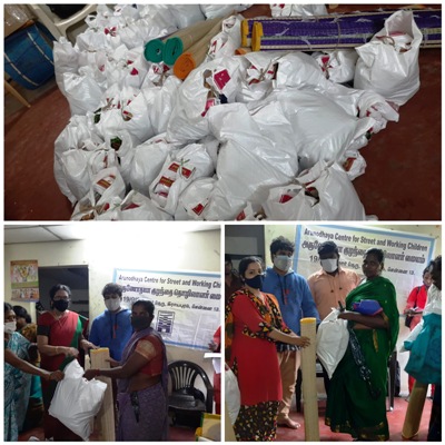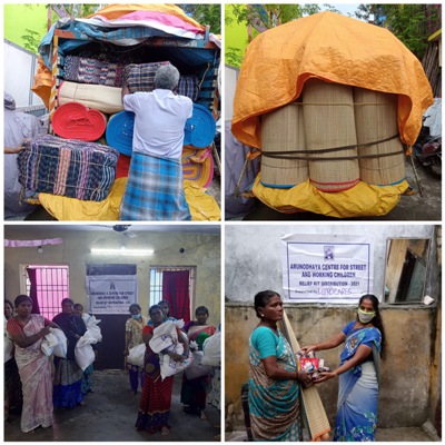 Provision kits, mats and bed sheets were distributed to 100 Irula families in Sadayankuppam and Athipet.